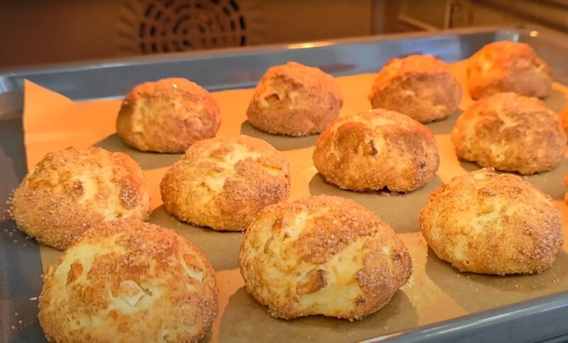 Katru gabaliņu sarullē bumbiņā un apviļā cukura un kanēļa maisījumā.