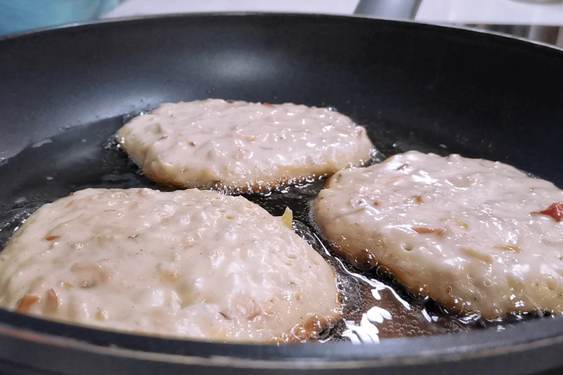 Uz pannas uzkarsē eļļu un ar karoti liec mīklu, veidojot nelielus plācenīšus. Cep vidējā karstumā aptuveni 2–3 minūtes no katras puses, līdz tie kļūst zeltaini brūni un smaržīgi. Kad pirmā partija gatava, māja jau būs pilna ar saldo ābolu un kanēļa aromātu. Tieši tādu, kas liek visiem no rīta pamosties agrāk.