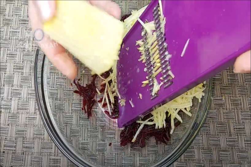 Nomazgā bietes ar birstīti un vāri tās mizā 40–60 minūtes līdz mīkstumam (atkarībā no lieluma). Vai arī — cep folijā 200 °C temperatūrā 50–60 minūtes. Ceptas bietes būs aromātiskākas un mazāk ūdeņainas. Kad atdzisušas, nomizo un sarīvē uz rupjās rīves.