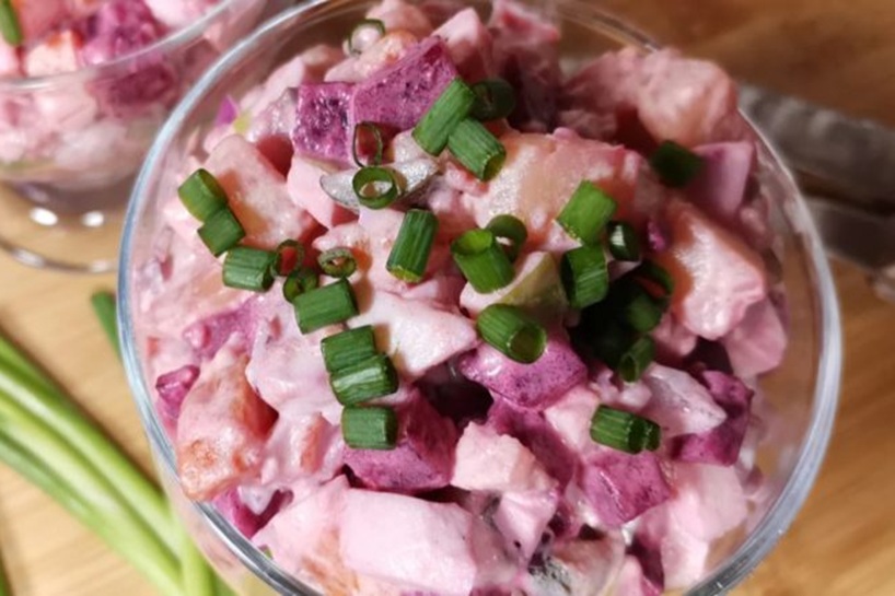 Šos salātus pagatavoju nejauši, bet tagad tie ir kļuvuši par īstu ģimenes favorītu — ģimene saka, ka garša pat labāka nekā klasiskajai “siļķei kažokā”.