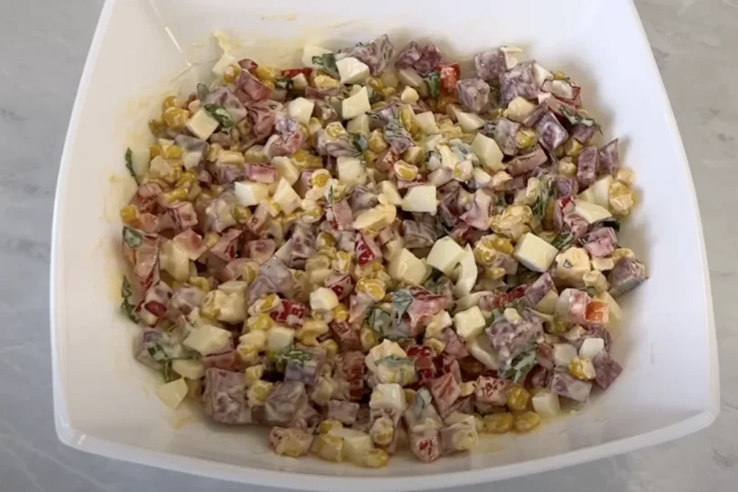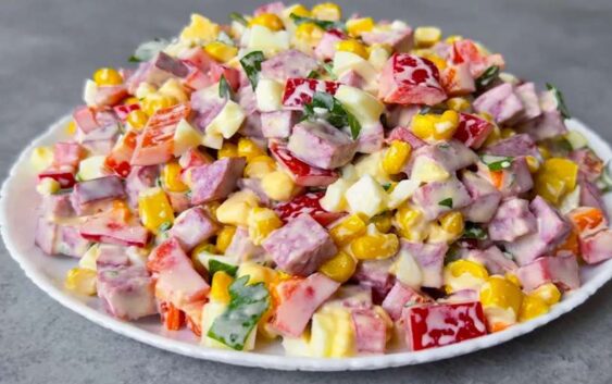 Tikai pāris vienkāršas sastāvdaļas, mazliet laika un rezultāts — sātīgi, krāsaini un neticami gardi salāti, kas garšo visiem bez izņēmuma. Šī recepte ir īpaši populāra ģimenēs, kur mīl ātru, bet kvalitatīvu maltīti. To var pasniegt gan svētdienas pusdienās, gan brīžos, kad viesi burtiski stāv uz sliekšņa.