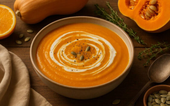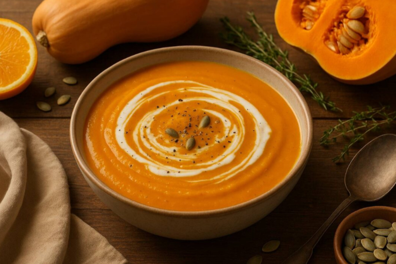 Ķirbju krēmzupa ar apelsīnu un saldā krējuma piedevu — tas ir vienkāršs ēdiens, kas pārvēršas par spilgtu rudens galda akcentu. Tā silda ne sliktāk par pledu, uzlabo garastāvokli un padara parastu vakariņu vakaru nedaudz svinīgāku.