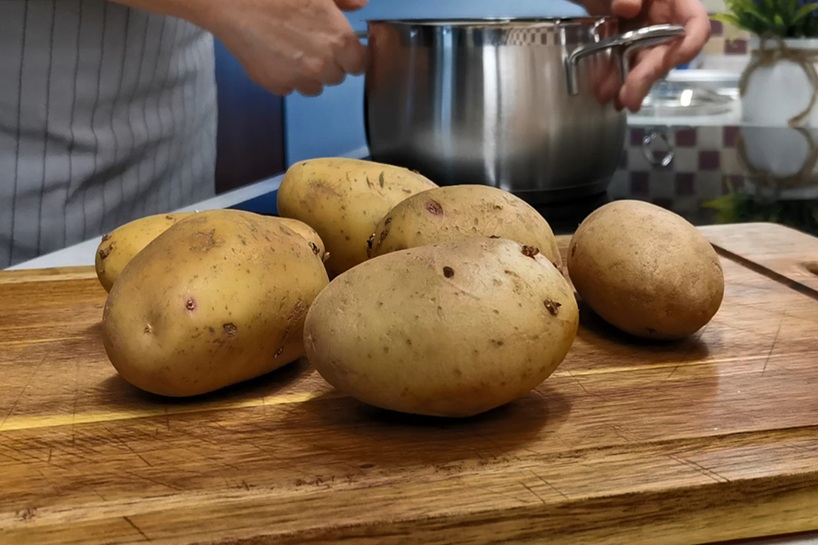 Kartupeļus vāra “mundierī” līdz pilnīgai gatavībai. Mazs noslēpums – ūdeni vajadzētu stiprāk sālīt (apmēram 1 ēdamkaroti uz litru ūdens). Tad kartupeļiem parādās īpaša garša, kas atgādina ceptus, un tie kļūst aromātiskāki.