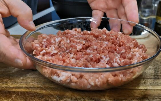 Vispirms sagatavojam maltās gaļas masu. Var izmantot gan jauktu maltās gaļas maisījumu, gan tikai liellopu vai tikai cūkgaļu — kā nu kuram garšo un ir pieejams. Masā iemaisa olu, nelielu daudzumu rīvmaizes, sāli, piparus un sasmalcinātu ķiploku. Nekā lieka — tā masa paliek īpaši maiga un sulīga.