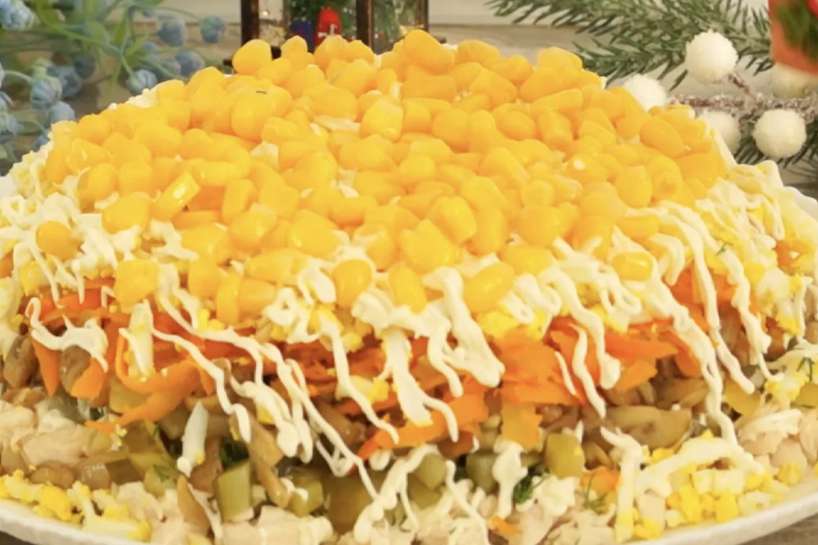 Šajos salātos ir viss, kas nepieciešams gardam ēdienam – sulīga vista, aromātiskas sēnes, kraukšķīgi gurķīši un viegli salda kukurūza. Visi slāņi lieliski sader kopā un veido patīkamu, maigu garšu, kas nekad neapnīk. Tie ir gan svinīgi, gan vienkārši pagatavojami, tāpēc lieliski iederas jebkuros svētkos – dzimšanas dienā, Ziemassvētkos vai ģimenes svētdienas maltītē.