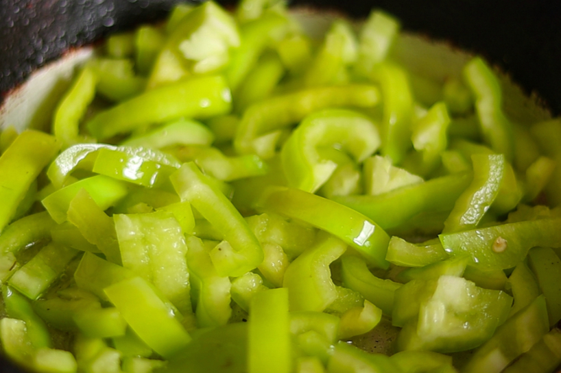 Sagriež saldos piparus un apcep tos pannā dažas minūtes.