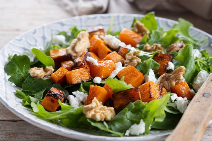 Šajos salātos ķirbis ir aizstājis gurķus, tomātus un citus tradicionālos dārzeņus. Tieši tāpēc, kā saka profesionāļi, tā garšas profils izrādījies negaidīti sarežģīts. Taču bez siera un riekstu līdzdalības panākt pilnīgu harmoniju būtu bijis neiespējami.